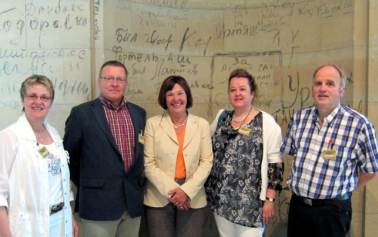 Britta Winko (Westküstenklinikum Heide), Bernd Friedrichs (Scandlines/Fehmarn), Bettina Hagedorn, Inke-Marie Jaschinski (Vorsitzende der AfA Ostholstein) und Matthias Stecher (Westküstenklinikum Heide).