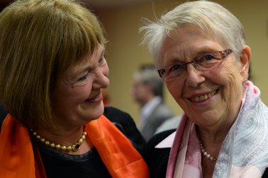 Herzliches Treffen zweier langjähriger Weggefährtinnen, die gemeinsam über 25 Jahre Ostholstein im Bundestag repräsentieren: Antje-Marie Steen aus Grömitz, MdB von 1990 bis 2002, und ich seit 2002 als ihre SPD-Nachfolgerin (Foto: studio kohlmeier berlin)