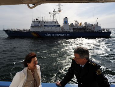 Mit Joachim Franklin war ich einig, dass Ersatz für die mittlerweile veralteten Bundespolizeischiffe BP 21-23 beschafft werden muss (im Hintergrund zu sehen: BP 22)