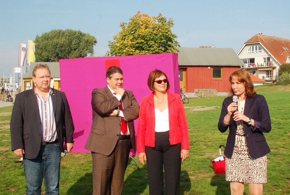 Eine Besonderheit fand am 14. September auf der Festwiese am Niendorfer Hafen statt: Nicht alle Tage kommt es vor, dass der SPD-Bundesvorsitzende nach Ostholstein findet. Nachdem er bereits 2008 bei uns zu Gast war, bin ich froh, dass ich mit Sigmar Gabriel endlich wieder einen gemeinsamen Termin finden konnte. Im zwanglosen Gespräch mit den Bürgerinnen und Bürgern tat sich die volle Bandbreite von Themen auf, die den Menschen auf den Nägeln brennt. Dabei wurde deutlich, dass die SPD mit ihren Inhalten viel Zustimmung erfährt. Besonders um meine Kernthemen im Haushaltsausschuss, Arbeit und Soziales , machen sich Viele Sorgen, weil sie erkennen, dass Schwarzgelb hier in den letzten Jahren nichts für die Menschen getan hat.