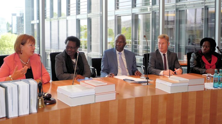 Eine weitere Delegation des ugandischen Rechnungshofs unter Leitung von Auditor General Mr. John F.S. Muwanga besuchte am Freitagmorgen um 7.30 Uhr die von mir geleitete Sitzung des Rechnungsprüfungsausschusses. Im Anschluss an die Ausschusssitzung hatten wir die Gelegenheit, über die Zusammenarbeit zwischen Parlament und Rechnungshof und über Fortschritte bei der Korruptionsbekämpfung in Uganda zu diskutieren. Hintergrund: Schon im Februar 2013 habe ich an einer Delegationsreise des Rechnungsprüfungsausschusses nach Uganda teilgenommen - im Mittelpunkt dieser Reise stand ein damals hochaktueller Fall der Veruntreuung von Entwicklungshilfegeldern, den der ugandische Rechnungshof aufgedeckt hatte.