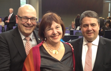 Ich freue mich auch, dass wir mit Heiko Maas einen jungen, dynamischen Justizminister bekommen werden, der als erster SPD-Minister auch für das Thema Verbraucherschutz zuständig sein wird. Das Umwelt- und Bauministerium wird Barbara Hendricks übernehmen und Aydan Özoguz wird als erste Frau mit türkischen Wurzeln Staatsministerin für die Themen Migration, Flüchtlinge und Integration.