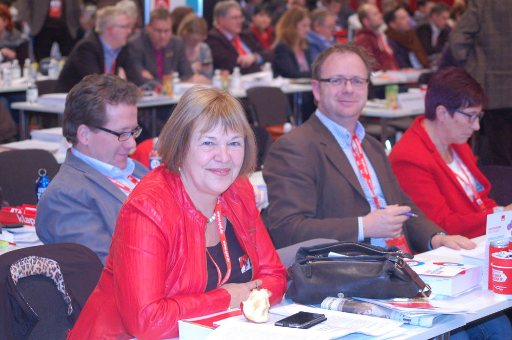 Dazu wurde die Parteispitze gewählt: Sigmar Gabriel wurde ebenso wie seine 5 Stellvertreter Hannelore Kraft, Manuela Schwesig, Aydan Özoguz, Olaf Scholz und Ralf Stegner sowie als Schatzmeister Dietmar Nietan im Amt bestätigt und als neue Generalsekretärin wählten wir mit über 93 Prozent Katharina Barley.