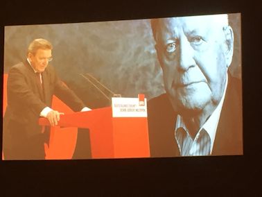 Altkanzler Gerhard Schröder hat zu Beginn des SPD-Parteitags an drei große Sozialdemokraten erinnert, die in diesem Jahr verstorben sind: Günter Grass, Egon Bahr und Helmut Schmidt. Schröder würdigte alle drei als „ große Deutsche, in deren Lebensläufen sich die Geschichte unsere Landes konzentriert hat.“