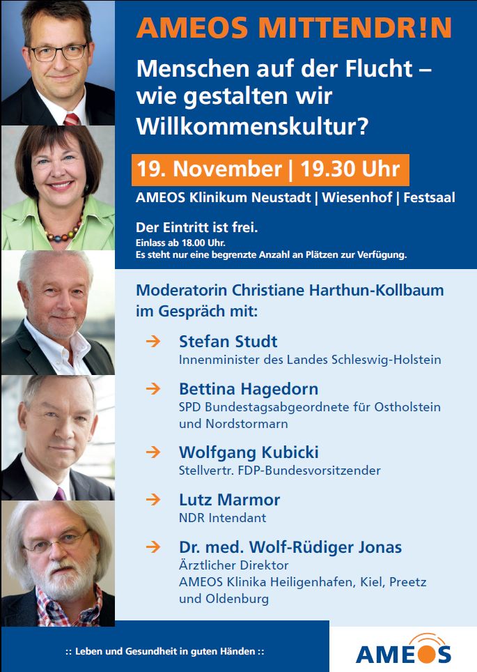 Am 19. November diskutiere ich bei AMEOS auf dem Podium zu Flüchtlingen. Sie sind herzlich zu der Veranstaltung eingeladen!