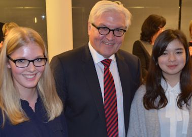 Charleen Schubert und Alisa Lien Gräfinger mit unserem Außenminister Frank Walter Steinmeier